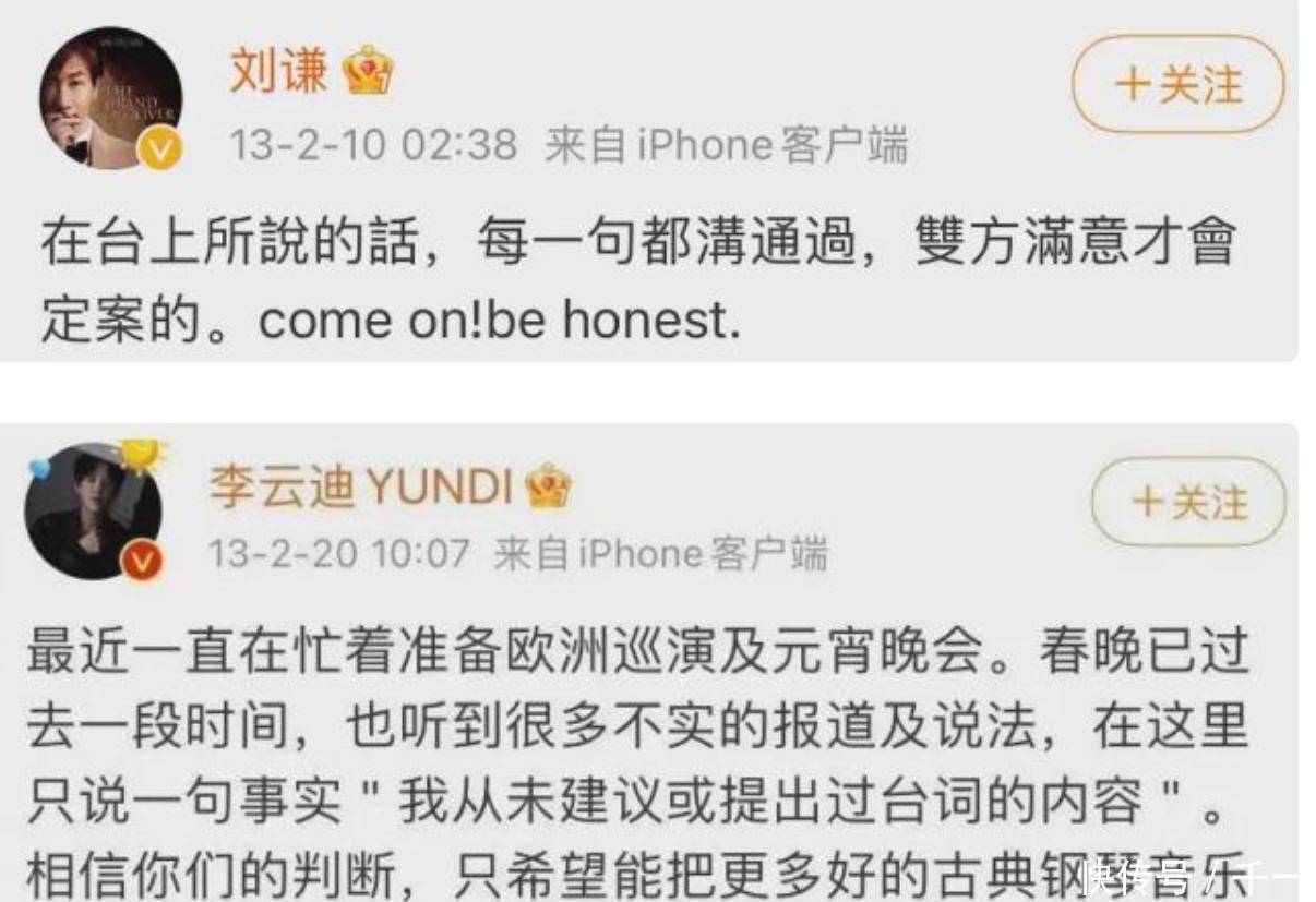 然而刘谦称,在节目表演前他就已和搭档沟通妥当。李云迪称自己从未参与对刘谦台词的讨论并发表意见。此事之后,刘谦便未现身于次年春晚。